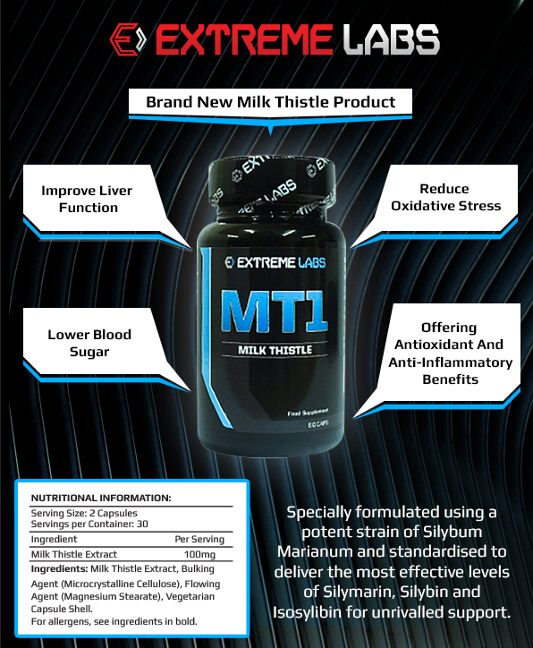 Extreme Labs MT1 is specially formulated using a potent strain of Silybum Marianum and standardised to deliver the most effective dose of Silymarin, Silybin, and Isosylibin for unrivalled support.