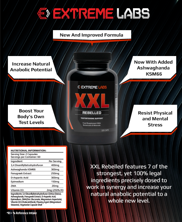 XXL REBELLED is an ALL NEW powerful muscle building and strength increasing natural testosterone booster that can help boost your body’s own test levels by over 600%.